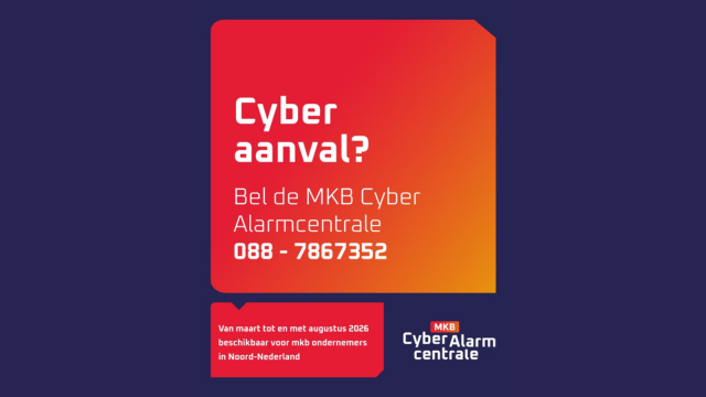 Van maart tot en met augustus 2026 is de MKB Cyber Alarmcentrale live in Noord-Nederland. Mkb-ondernemers in Drenthe, Groningen en Friesland kunnen bij een (vermoed) cyberincident direct bellen met 088 – 7867352 voor snelle en praktische hulp bij bijvoorbeeld hacks, datalekken of ransomware. De hulplijn helpt ondernemers om schade te beperken en meteen de juiste vervolgstappen te zetten.